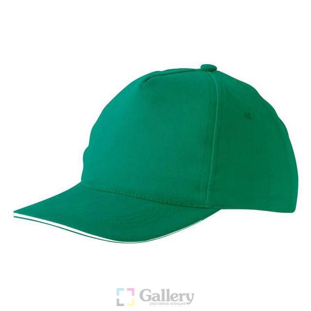 Пет панелна шапка сандвич с четири бродирани вентилационни отвора, велкро закопчаване.