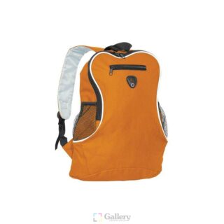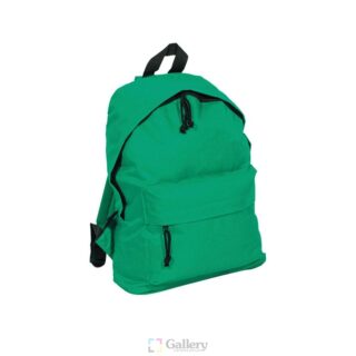 Раница с едно отделение, малък външен джоб с цип, подсилен гръб и дръжки.