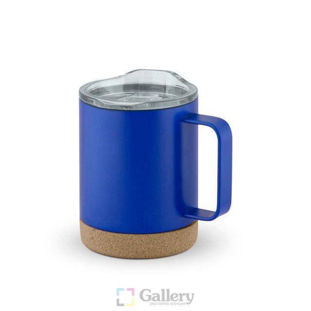Термо чаша, 350 ml. Материал: неръждаема стомана, пластмаса и корк. Размер на арттикула: Ø85х115 mm. Печатаемо поле: 40х40 mm. Печат: тампонен, ситопечат.