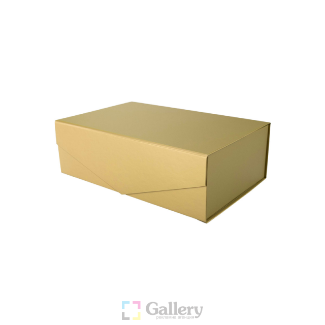 Луксозна сгъваема подаръчна кутия с магнитно закопчаване. Материал: картон. Размер на артикула: 310х200×100 mm. Печатаемо поле: 310х200 mm. Печат: ситопечат.