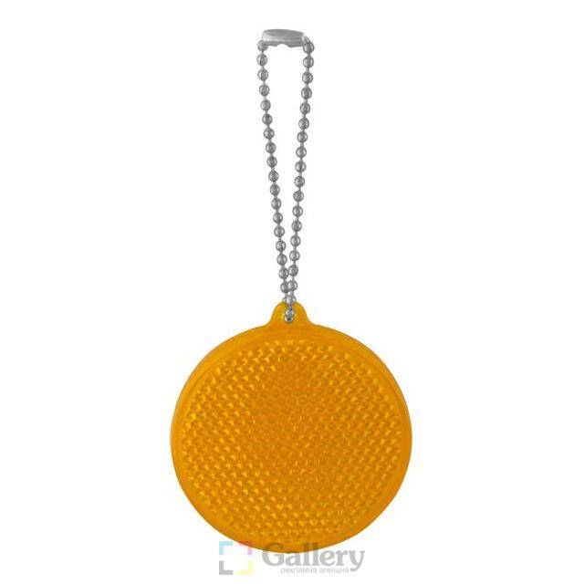 Светлоотразителен ключодържател. Материал: рефлекторна пластмаса. Размер: Ø48х7 mm. Печатаемо поле: 30х9 mm. Печат: тампонен, ситопечат.