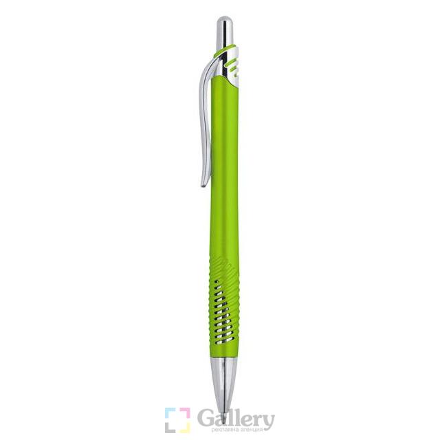 Химикалка, пълнител обикновен. Материал: пластмаса. Размер на артикула: Ø11х145 mm. Печатаемо поле: 40х6 mm. Печат: тампонен, ситопечат.