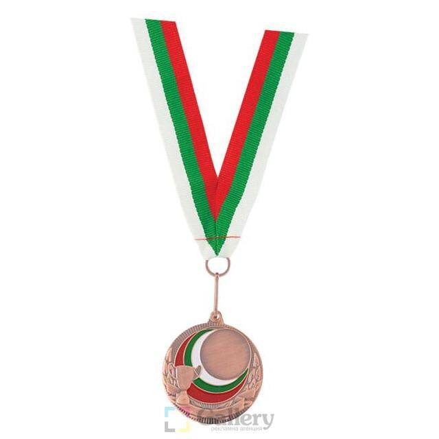 Медал. Материал: метал. Размер на артикула: Ø50 mm. Печатаемо поле: Ø25 mm. Печат: гравиране, обемен/ламиниран стикер