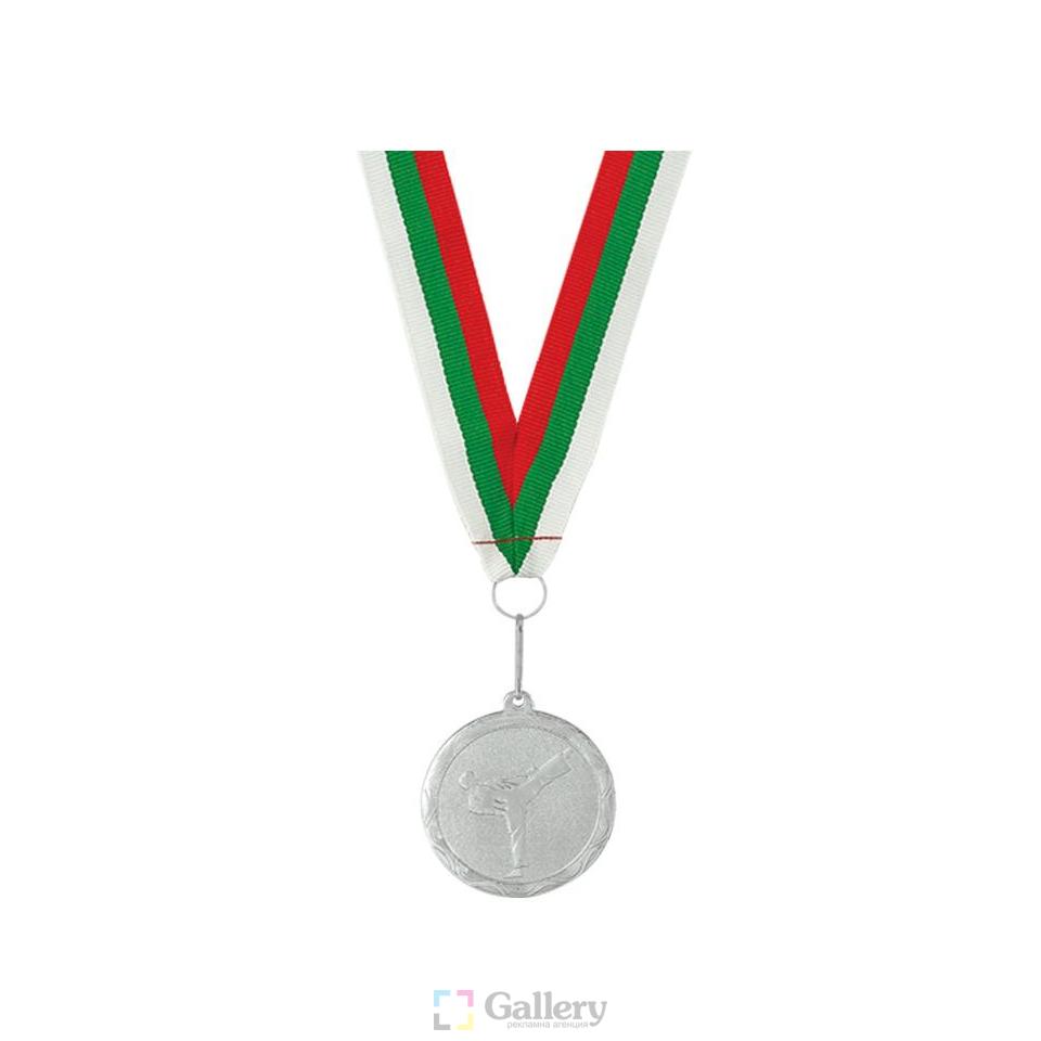 Медал. Материал: метал. Размер на артикула: Ø50 mm. Печатаемо поле гръб: Ø45 mm. Печат: гравиране, обемен/ламиниран стикер.