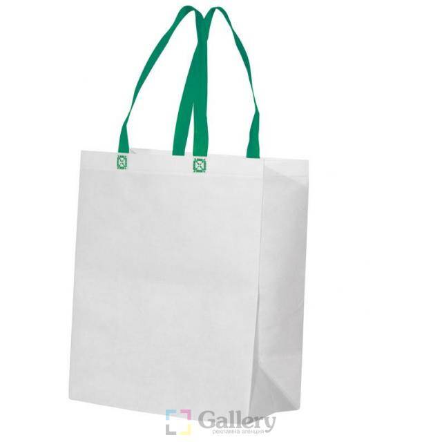 Чанта, ламинирана, безшевна. Материал: нетъкан текстил, 105 g/m². Размер на артикула: 340х420х180 mm. Размер на дръжка: 25х580 mm. Печатаемо поле: 200х150 mm. Печат: директен ситопечат.