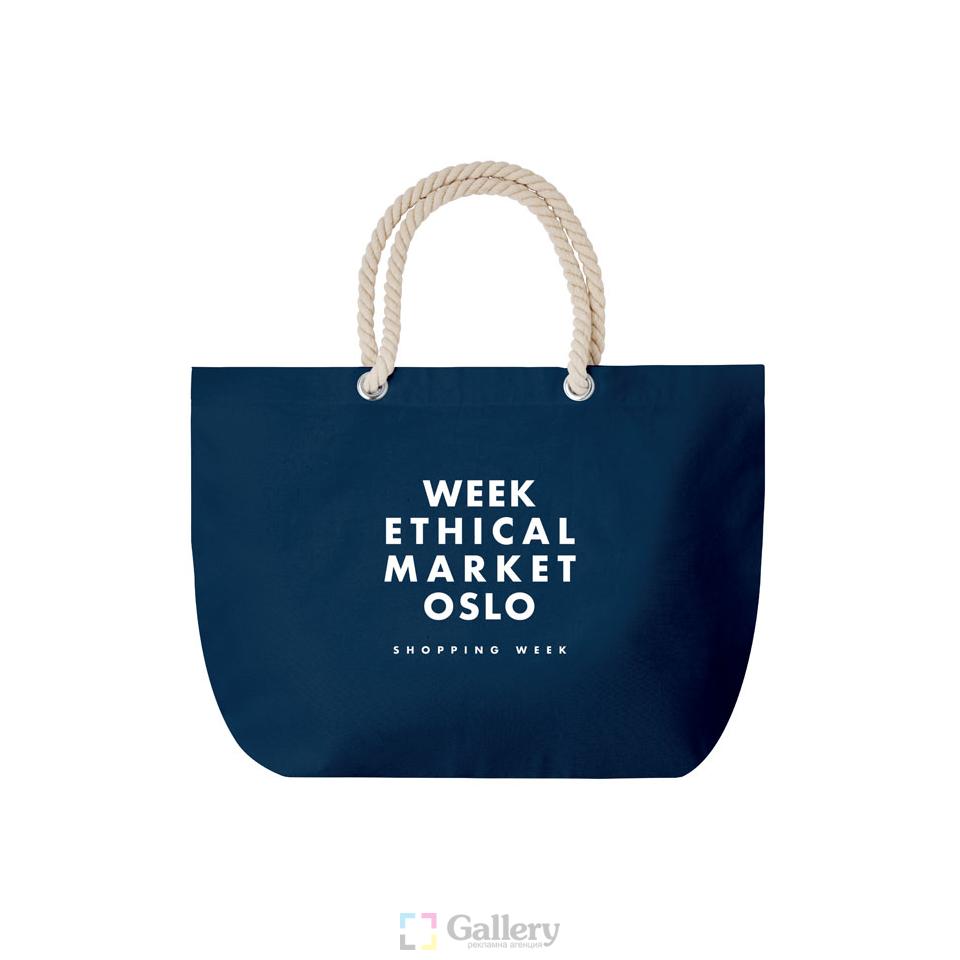 / Плажна чанта от памук с въжена дръжка 220 гр/м²