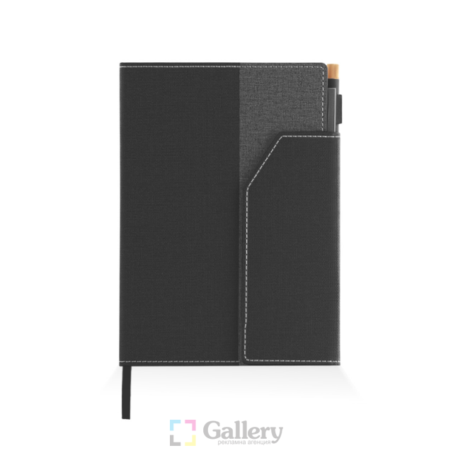 Тефтер A5 с химикалка, магнитно закопчаване и разделител, 96 листа с редове, цвят на хартията слонова кост, твърда корица.