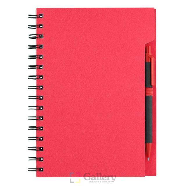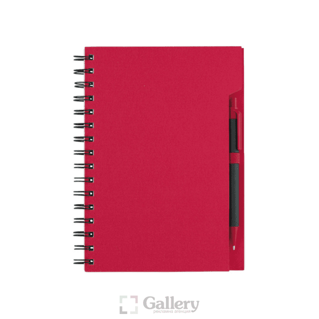 Еко тефтер с еко химикалка, 70 листа с редове, цвят на хартията слонова кост.