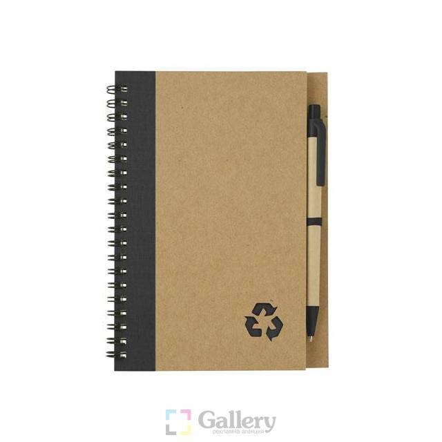 Еко тефтер с еко химикалка, 60 листа с редове, цвят на хартията слонова кост.