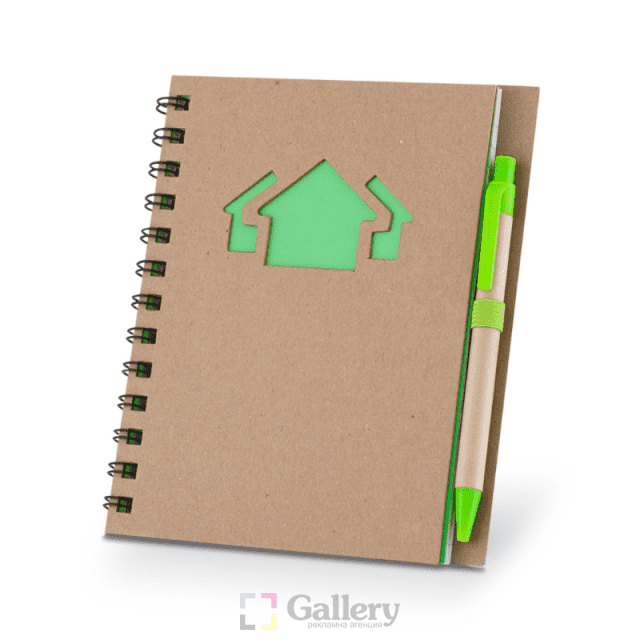 Еко тефтер с еко химикалка, 70 листа с редове, цвят на хартията бял.
