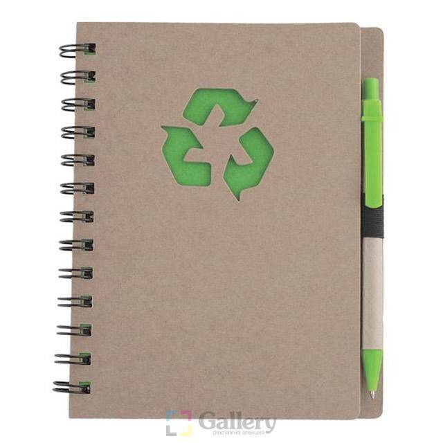 Еко тефтер с еко химикалка, 70 листа с редове, цвят на хартията натурален.