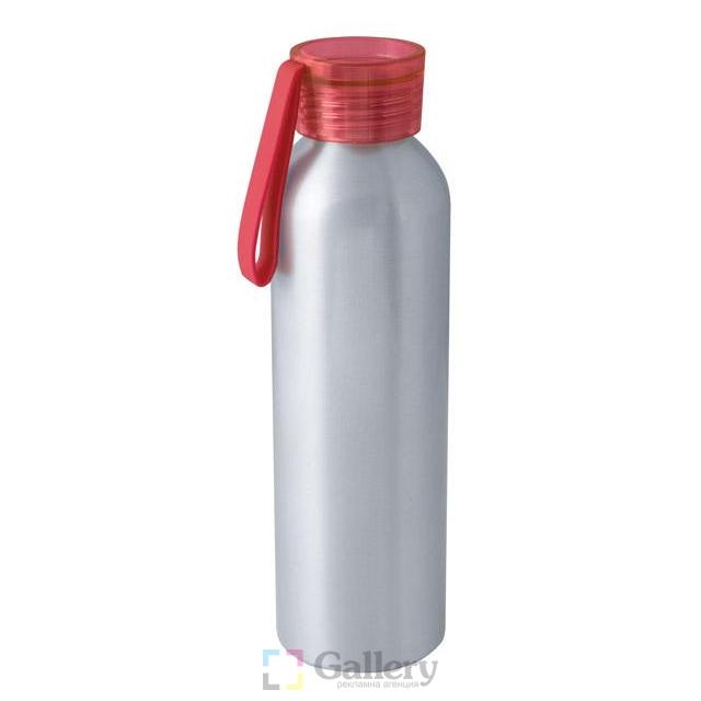 Спортна бутилка, 600 ml. Материал: алуминий, пластмаса и силикон. Размер на артикула: Ø65х230 mm. Печатаемо поле: 30х60 mm Печат: тампонен, ситопечат, гравиране