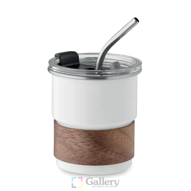 / Стоманена чаша с акациев захват и сламка