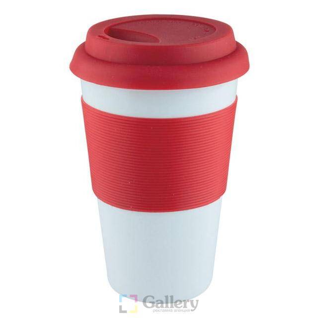 Керамична чаша със силиконов капак и силиконово захващане, 340 ml. Материал: керамика и силикон. Размер на артикула: Ø90х128 mm. Печатаемо поле: 35х20 mm. Печат: сублимация