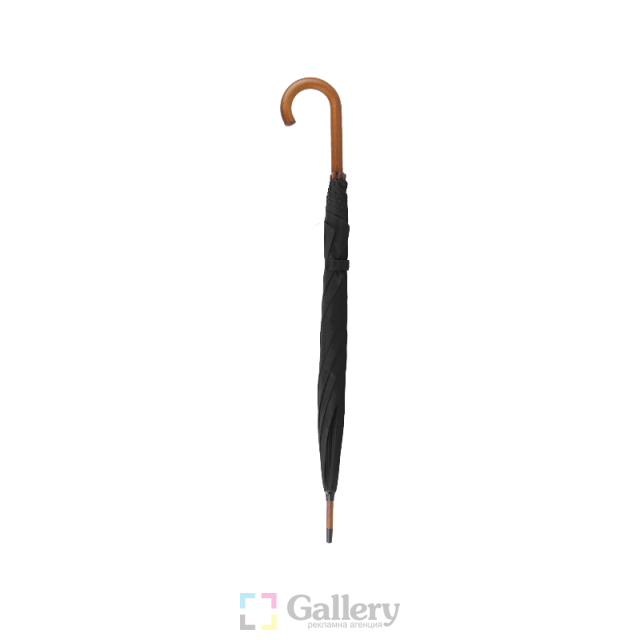 Aвтоматичен чадър, 8 панелен, конструкция от дърво и метал, извита дървена дръжка.
