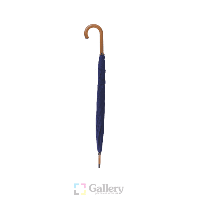 Aвтоматичен чадър, 8 панелен, конструкция от дърво и метал, извита дървена дръжка.