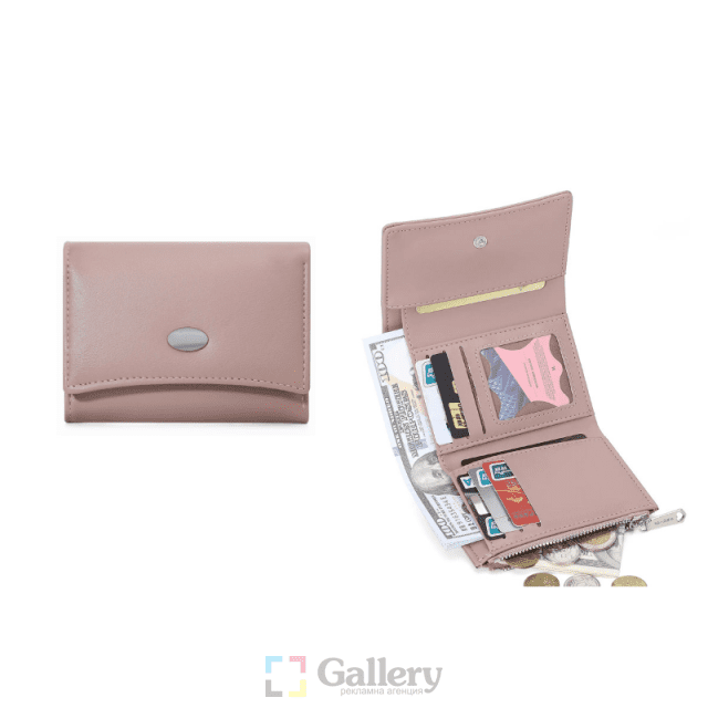 Дамско портмоне с едно отделение за банкноти, отделение за монети с цип, вътрешни джобове за карти.