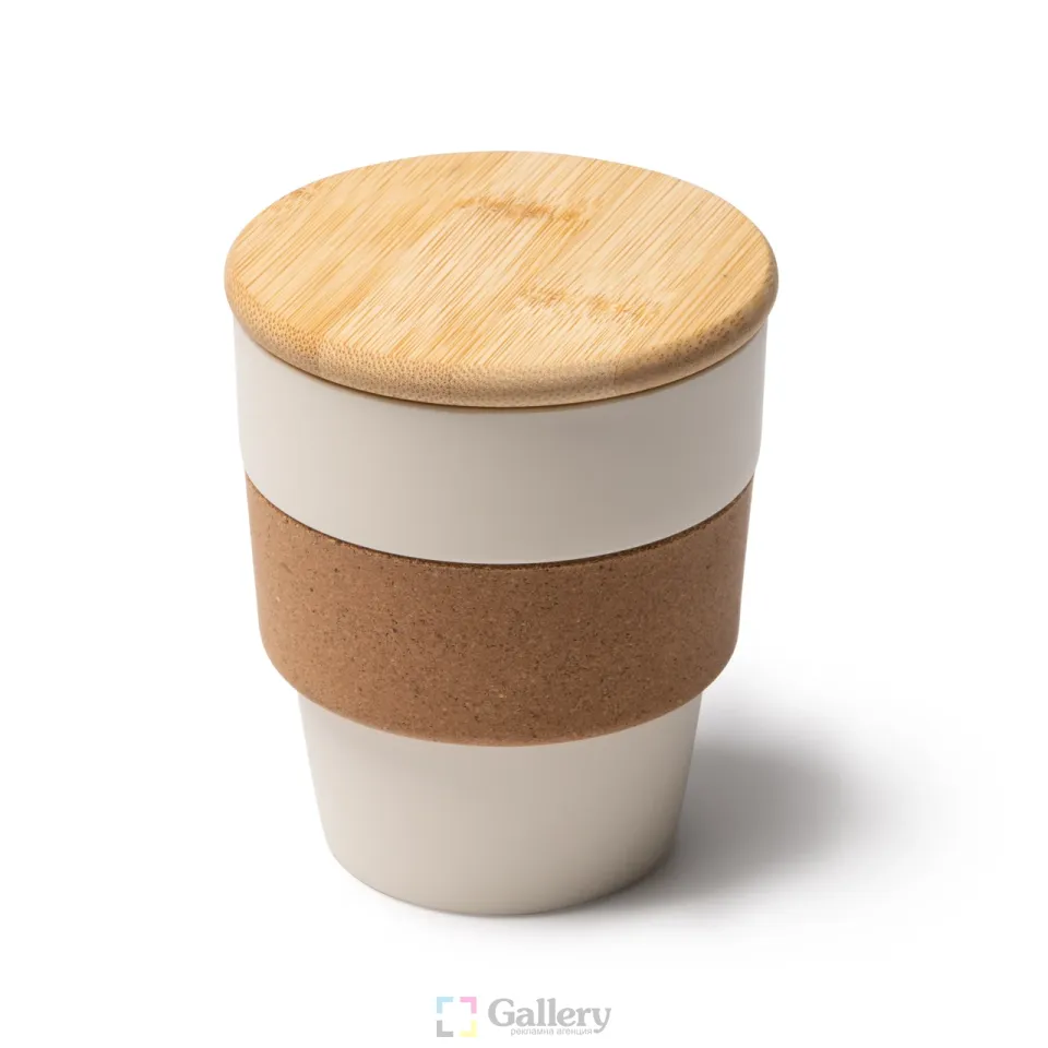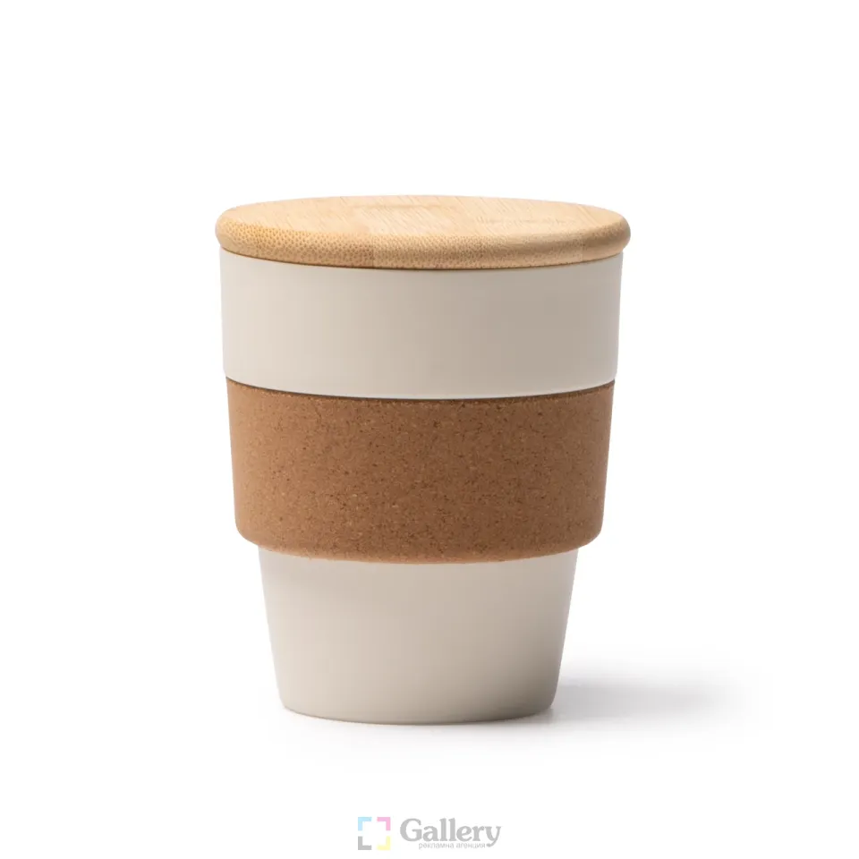Еко чаша с бамбуков капак и корков захват 350ml