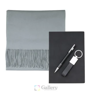 Комплект бележник А5, химикалка, шал и ключодържател